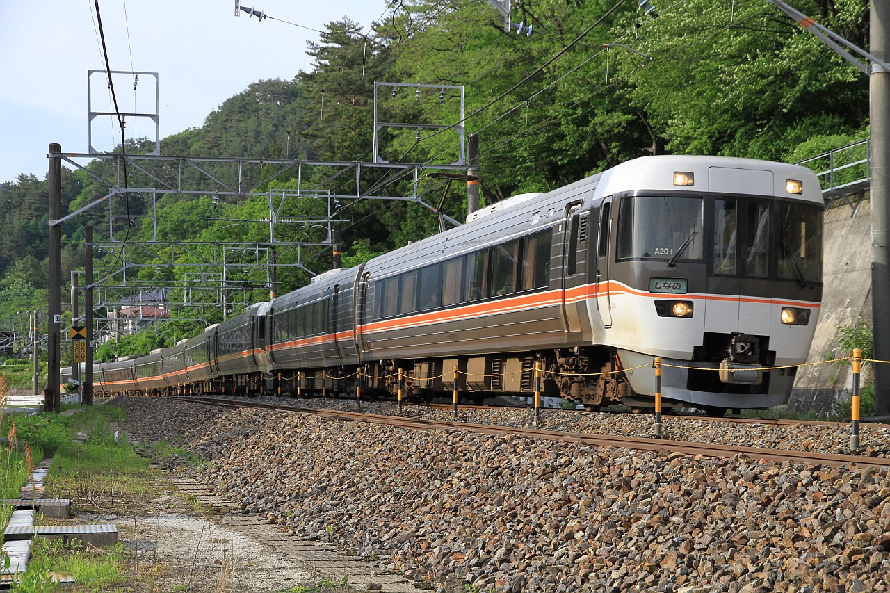 国道19号線が線路のすぐそばを走っており、道路脇から撮影が可能です。