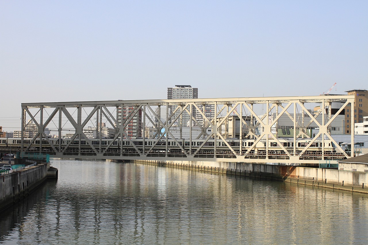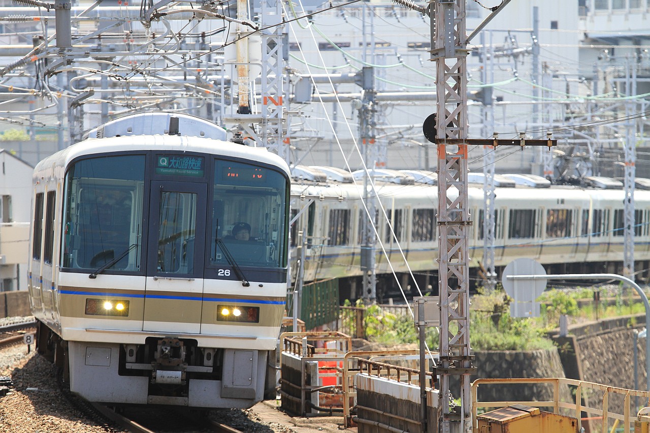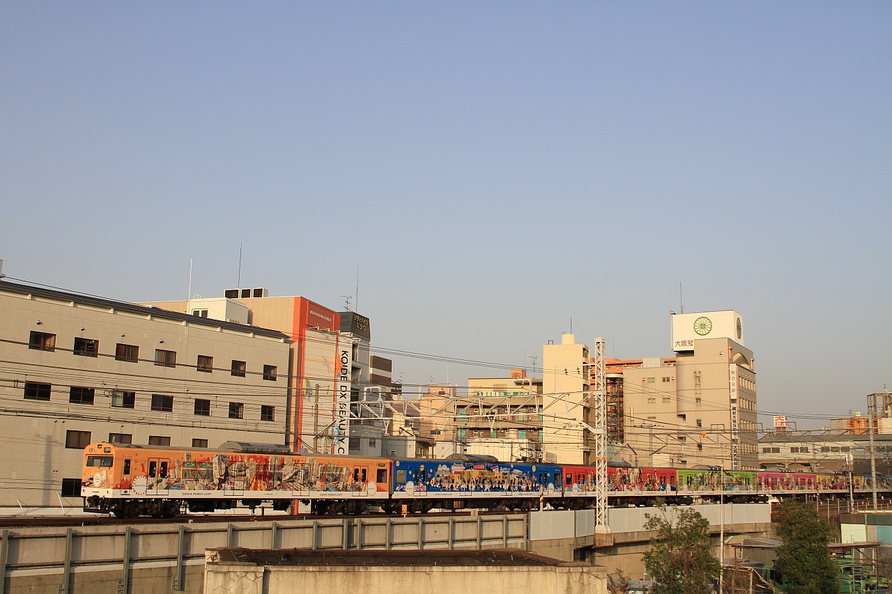 大阪環状線の普通・快速列車と、梅田貨物線を走る特急列車を狙うことができます。