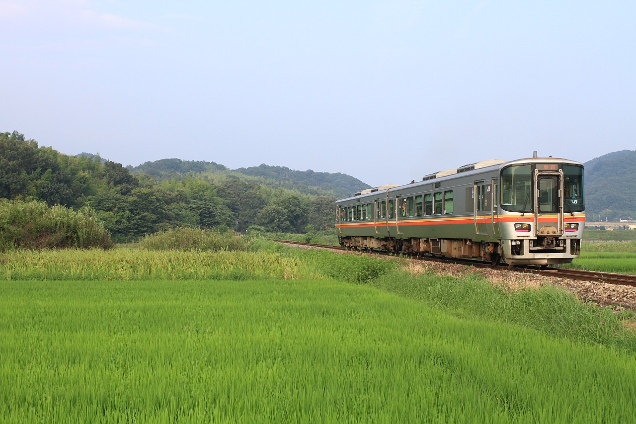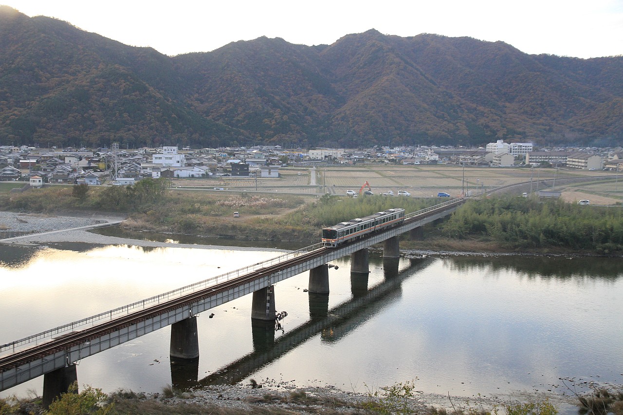 揖保川の鉄橋を渡る列車を俯瞰で狙います。