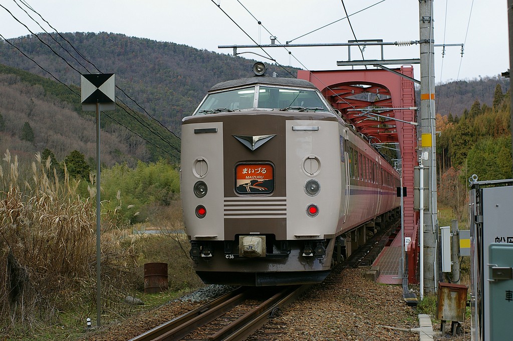 桂川を渡る赤い鉄橋です。 鉄橋のすぐ近くに踏切があり、そこから狙うことができます。 列車本数:普通列車と特急がともに1時間に1往復程度です。 駐車スペース:周辺道路に邪魔にならないように駐車可能です。