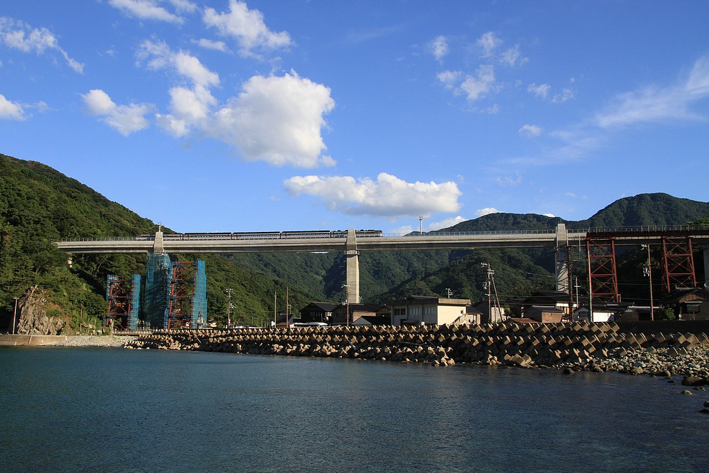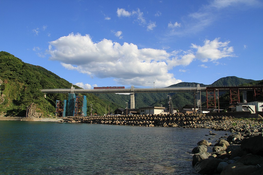 有名な余部橋梁を海側から狙います。