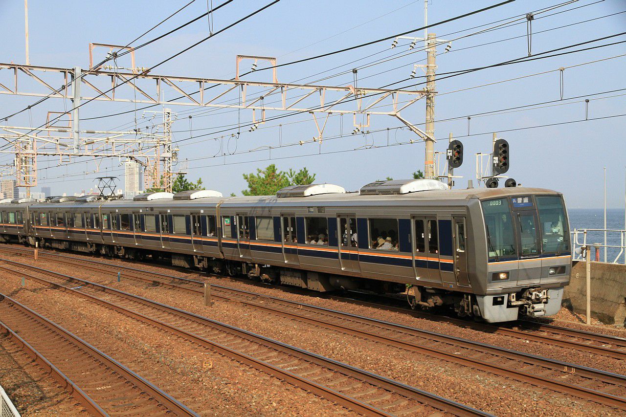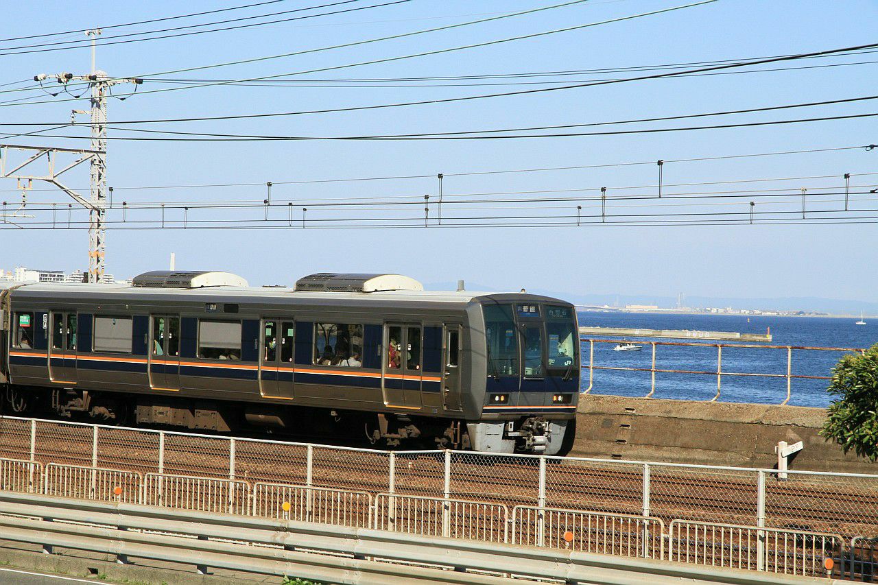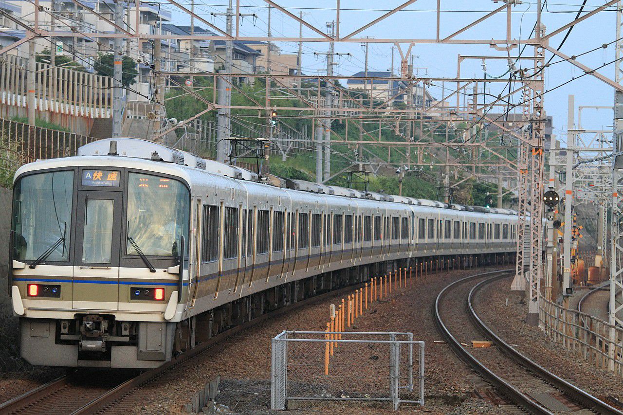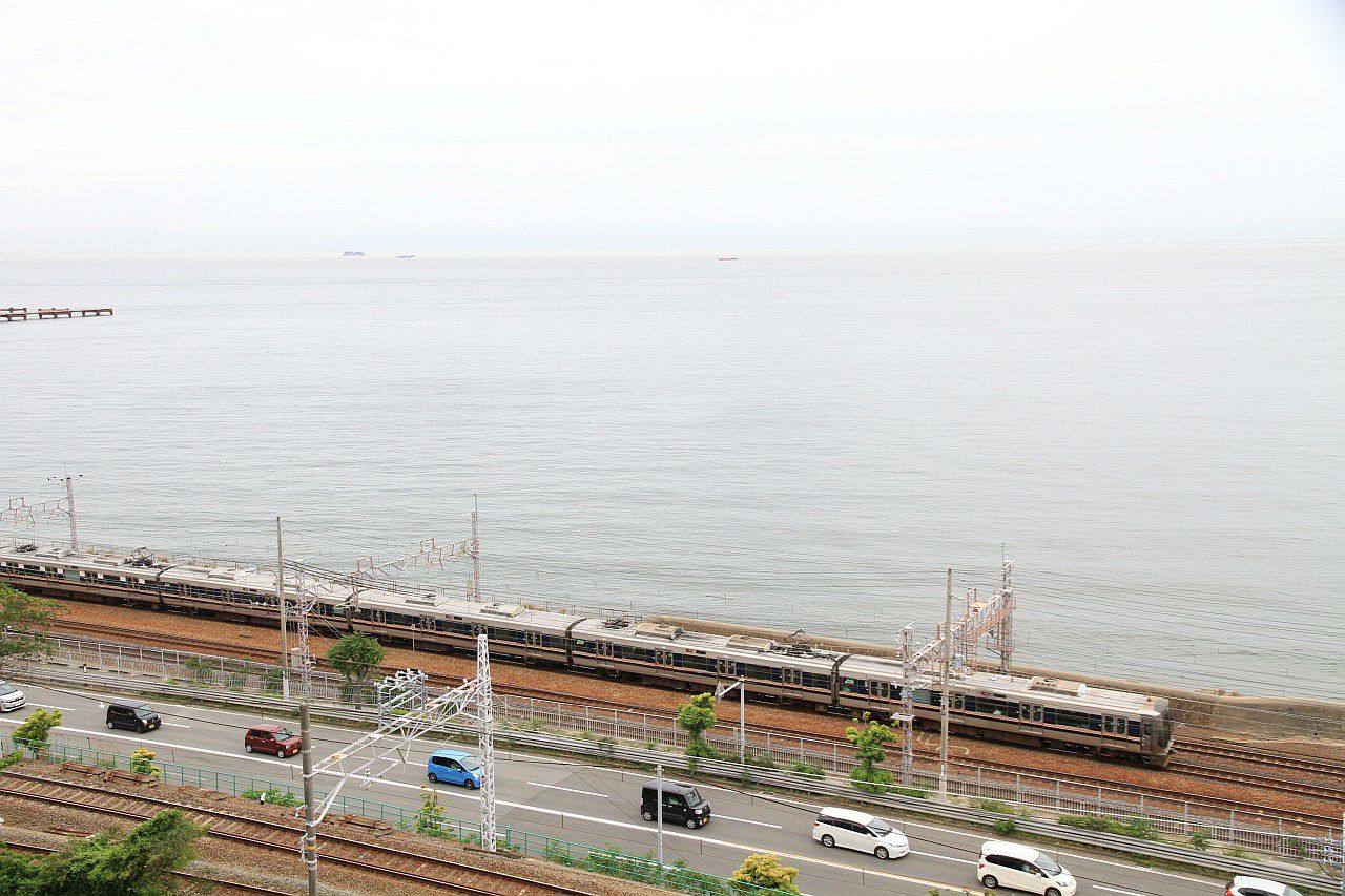 須磨駅方向は手前でカーブしていて、須磨の山をバックに狙うことができます。