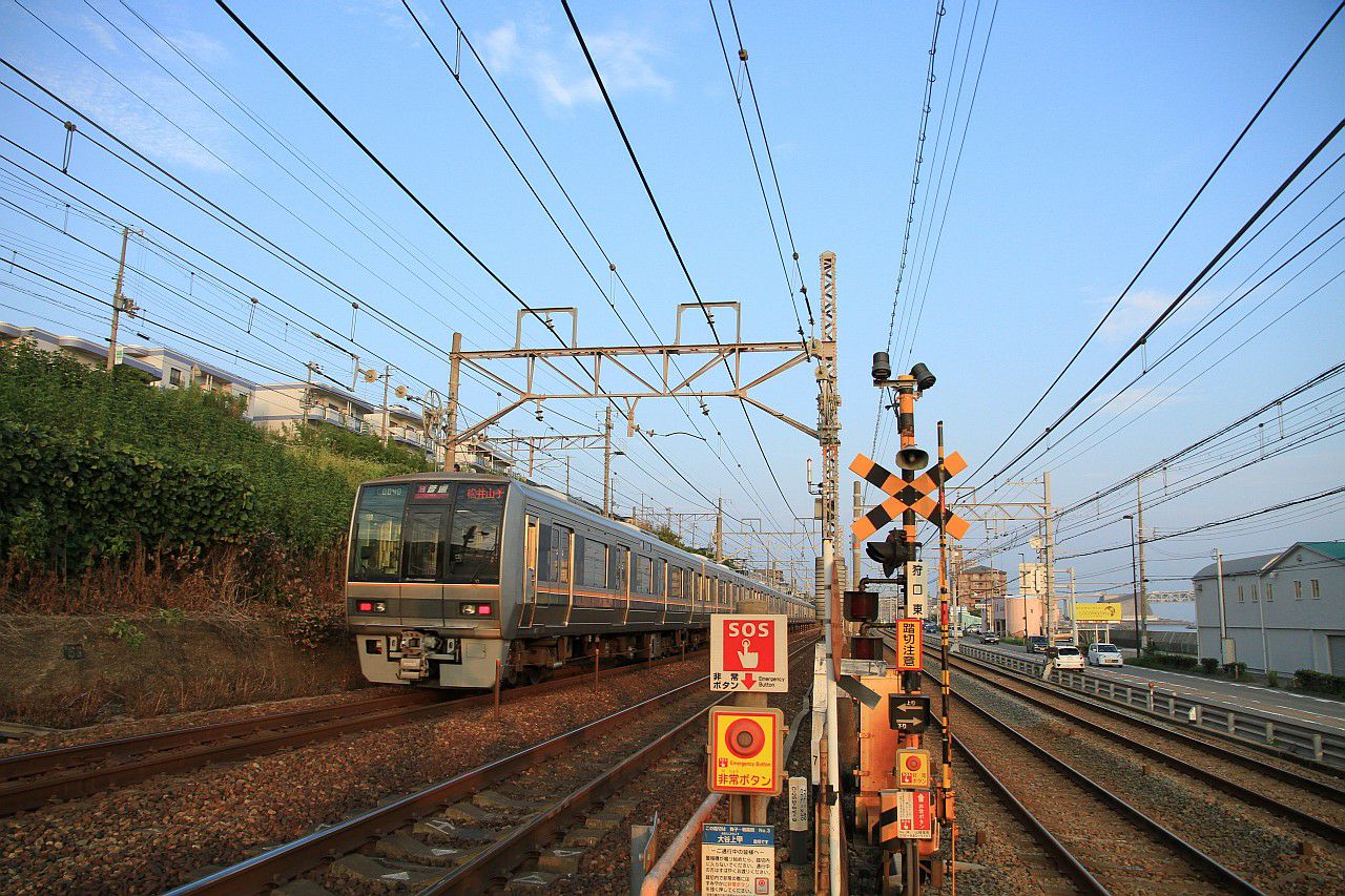 国道2号線の跨線橋のそばにある歩行者用の踏切脇からの撮影です。