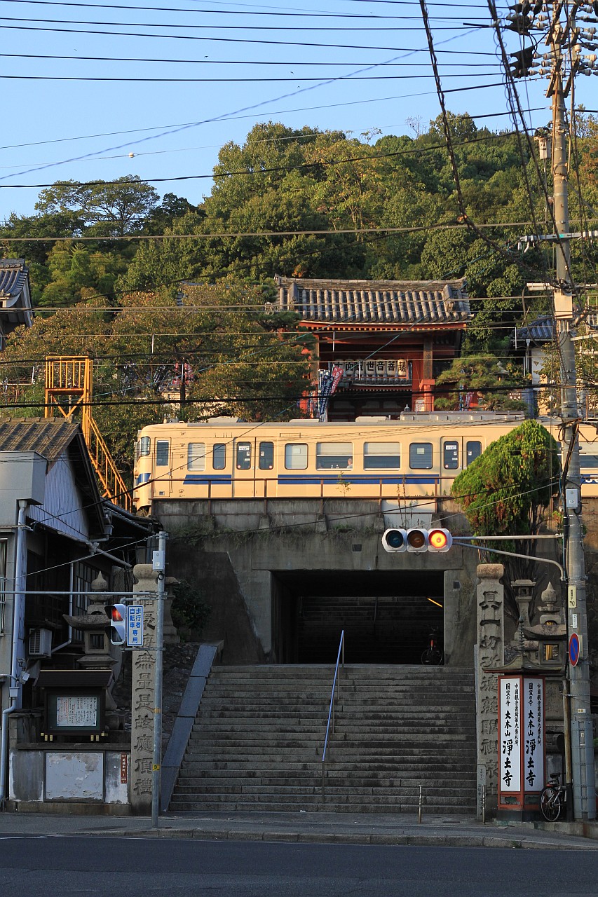 尾道らしい、お寺と階段と線路が凝縮された雰囲気を切り取ってみました。