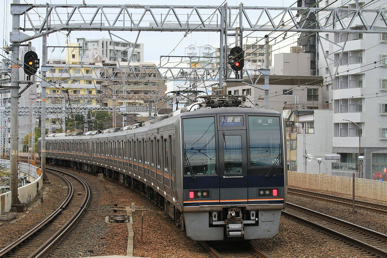 摩耶駅の大阪寄りホーム端からの撮影です。