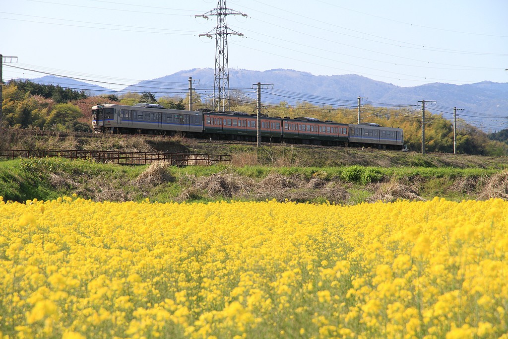 バイパスと湖西線の挟まれたエリアに菜の花畑が見えてきます。