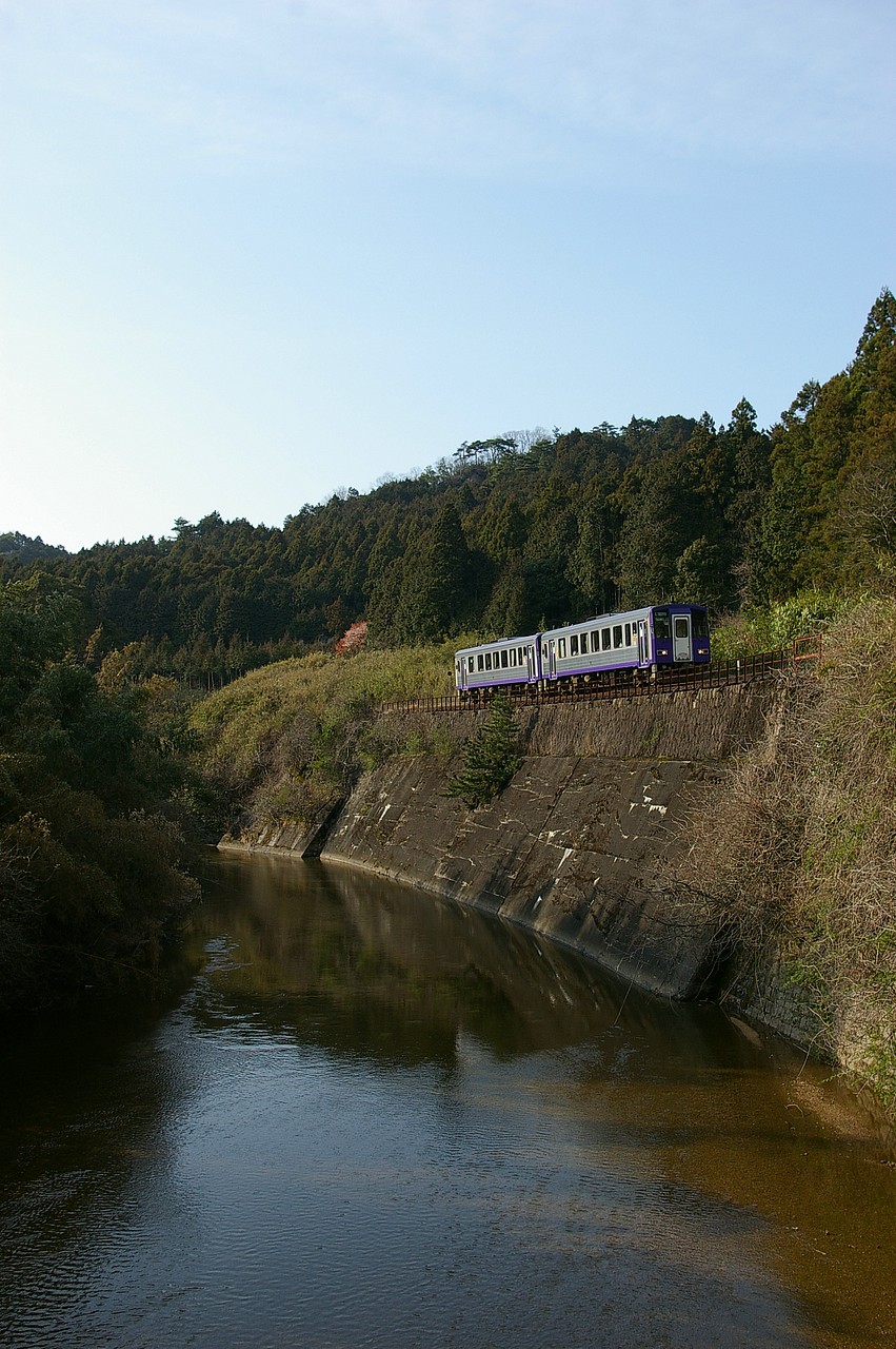 川沿いを走る列車を、国道25号線(非名阪)の橋から狙います。