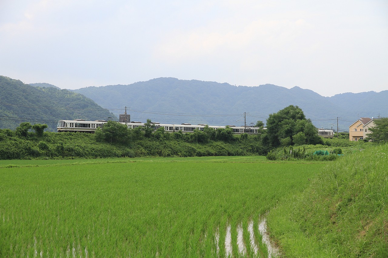 水田地帯の築堤を走る大和路快速です。