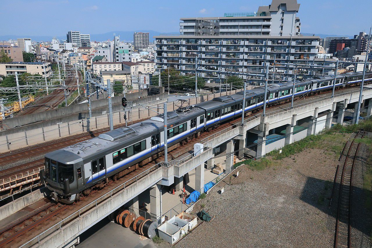 線路の上を走る天王寺バイパスの歩道からの撮影です。