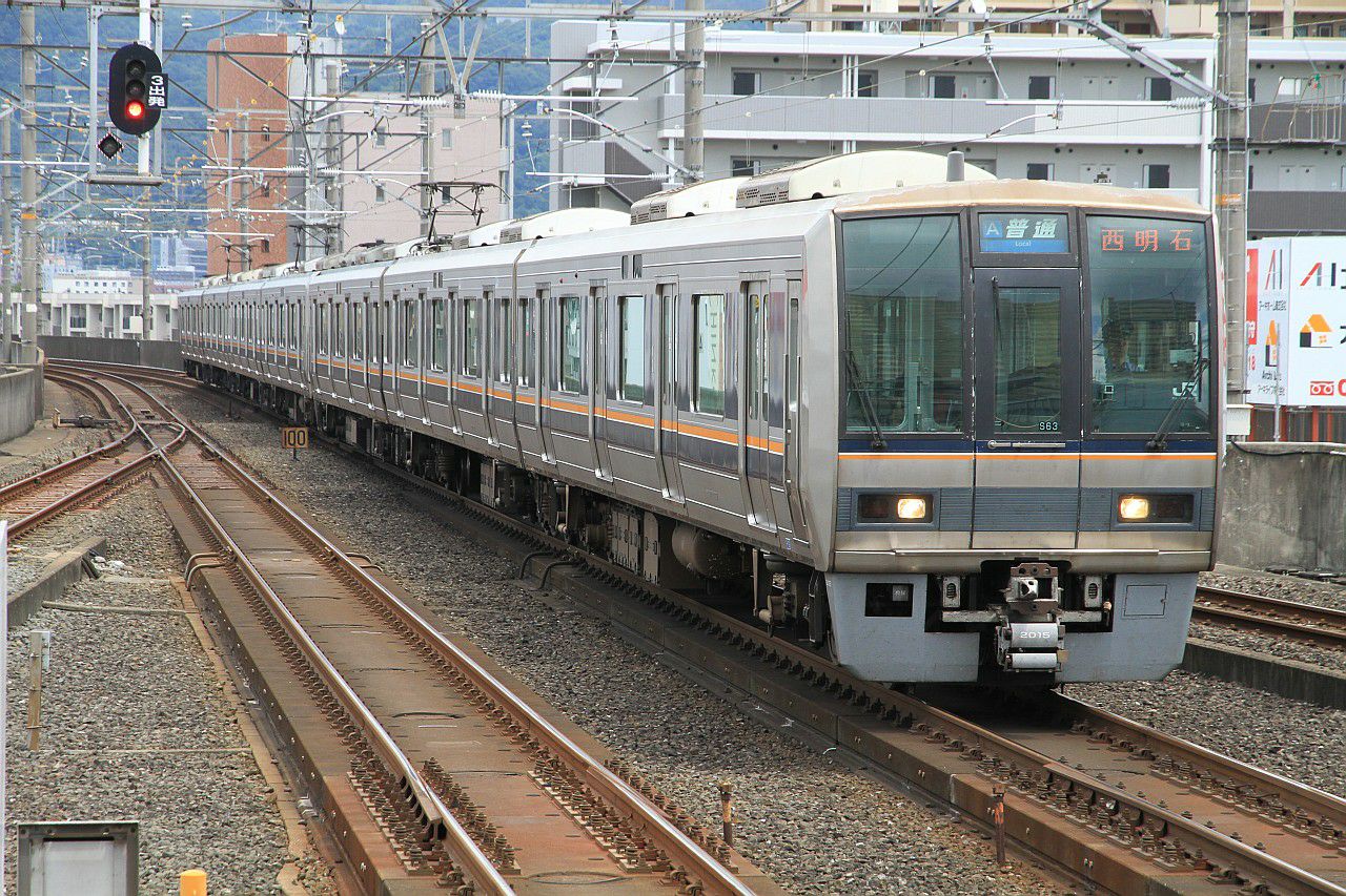 山陰本線と舞鶴線が分岐していき、山陰本線の方は大きくカーブしていくところです。