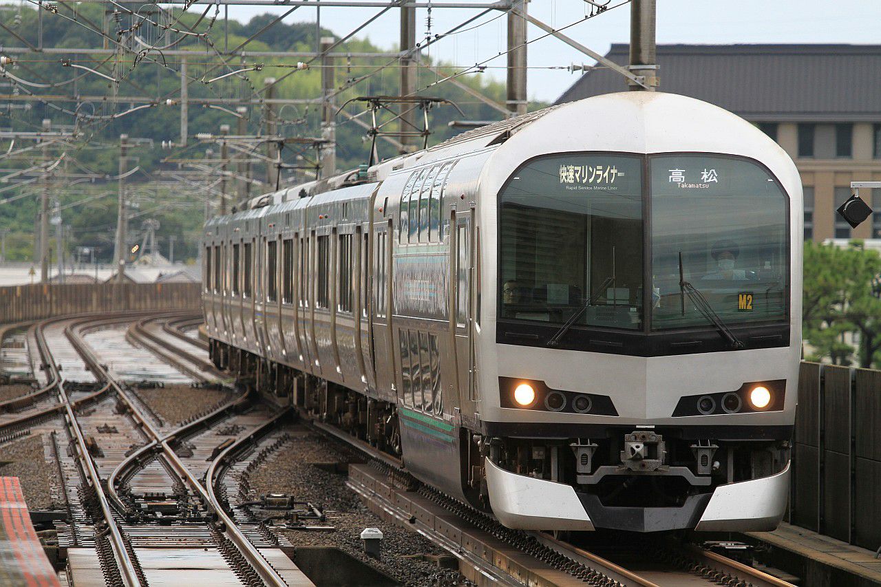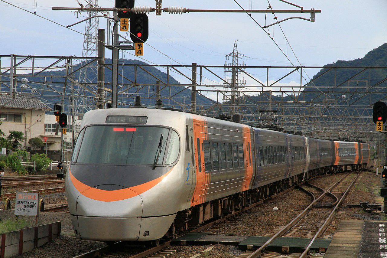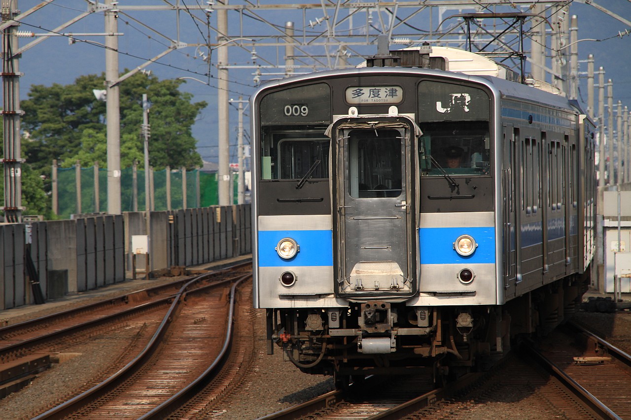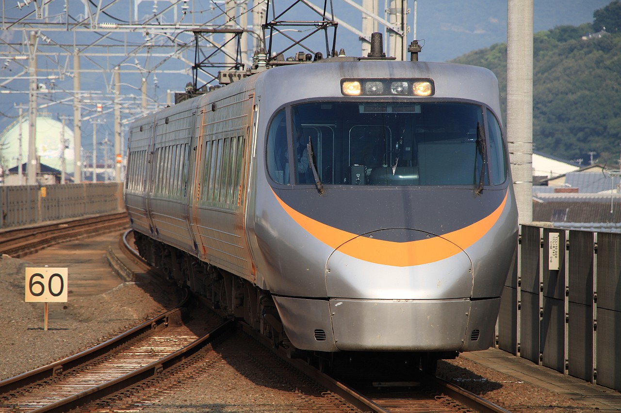 ホームに入線してくる列車を望遠レンズで正面から狙います。