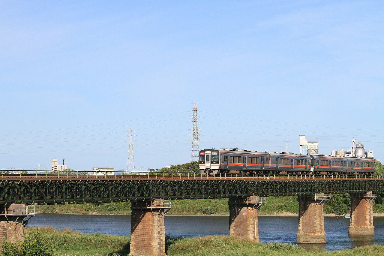 五十鈴川の鉄橋を渡る列車です。