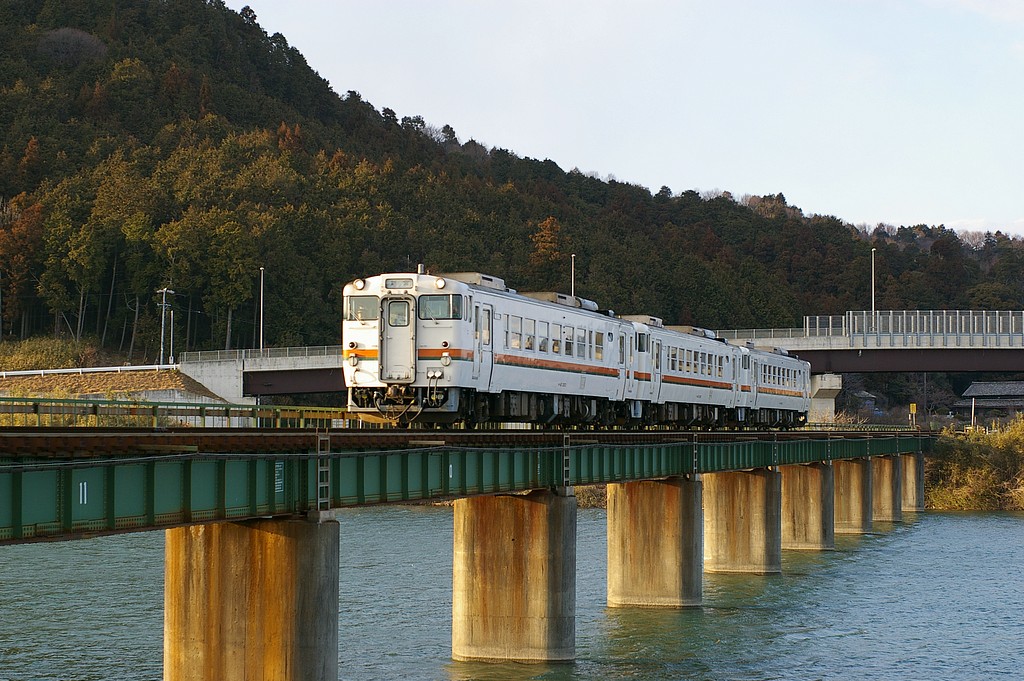 三瀬谷ダム近くの深い谷に鉄橋が架かっていますが、さらに少し高い位置に道路があるため、