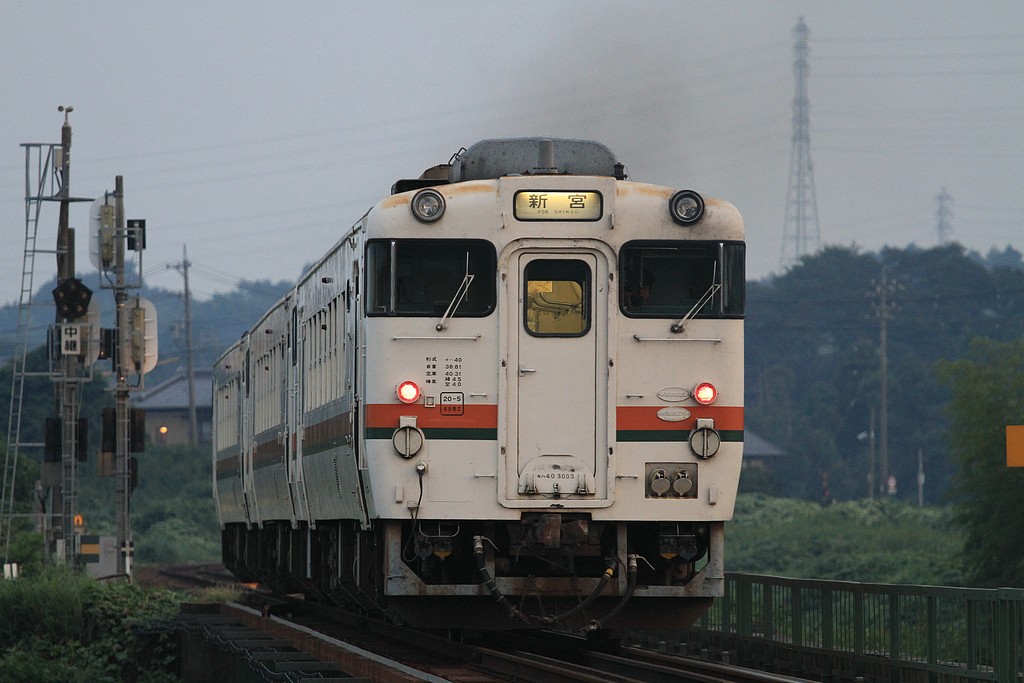 列車本数:上下ともに1時間に1本程度です。普通列車のみで、キハ40とキハ11が走っています。