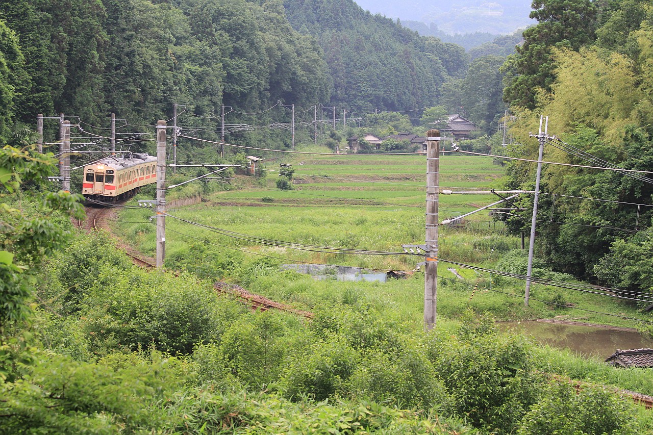 緑の中を走るローカル列車をアウトカーブから狙います。