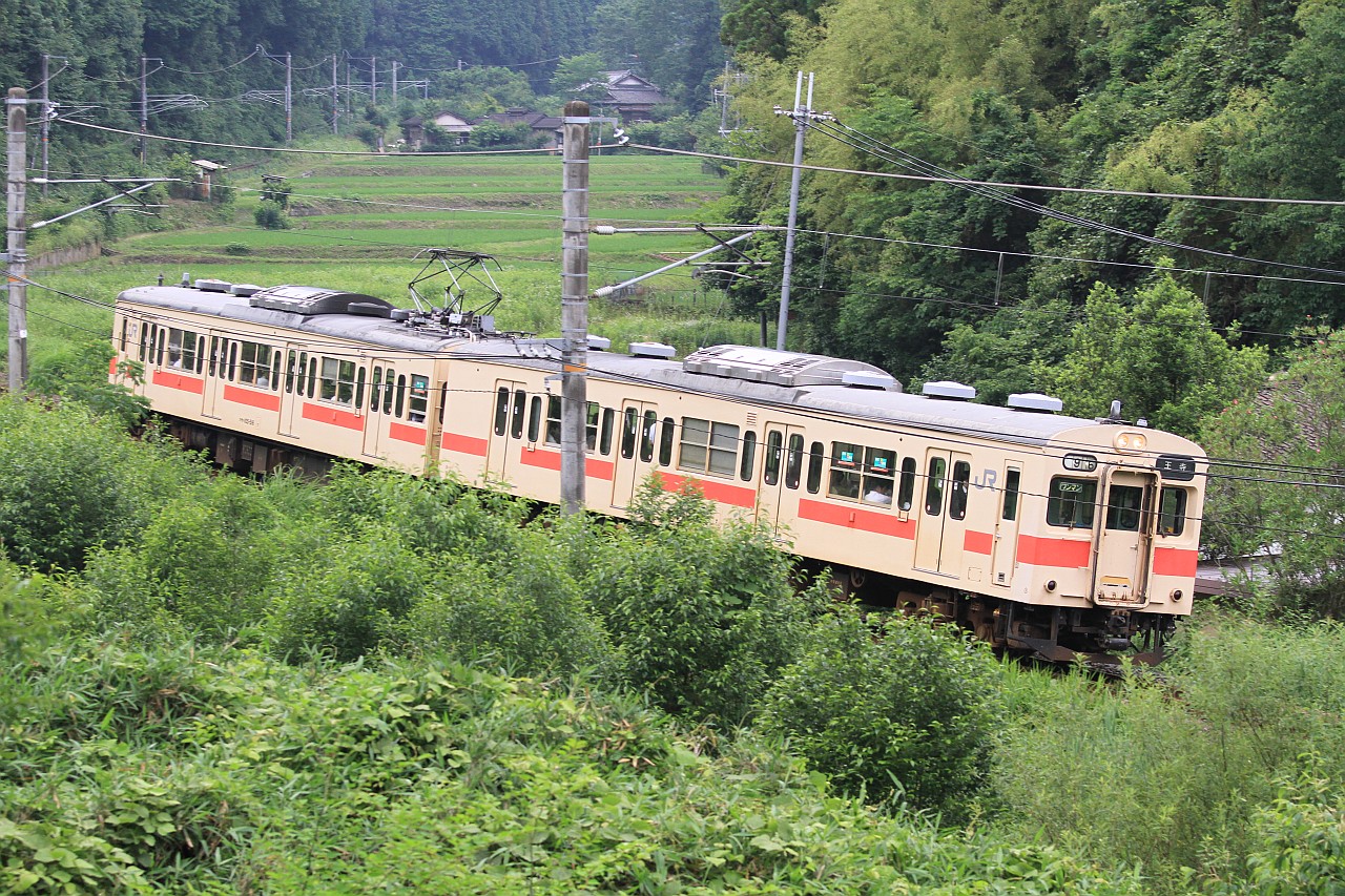朝夕には117系が走っているようですが、昼間の時間帯はほとんどが105系です。