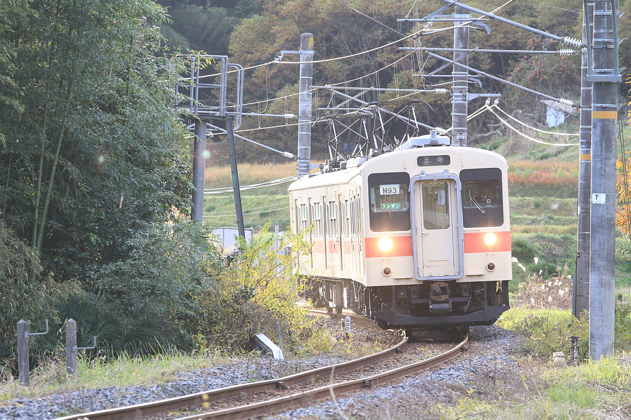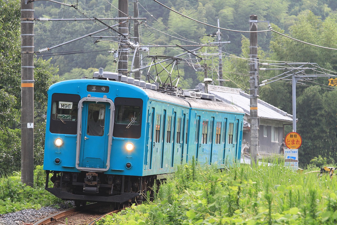 掖上-吉野口間を走る列車を、線路に隣接する道路から撮影できるポイントです。