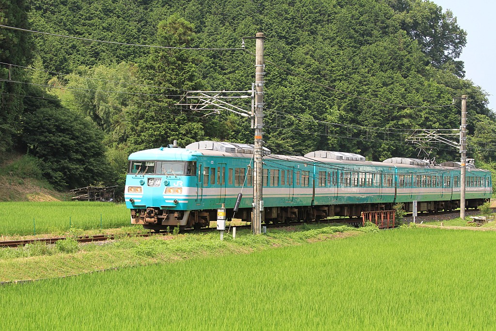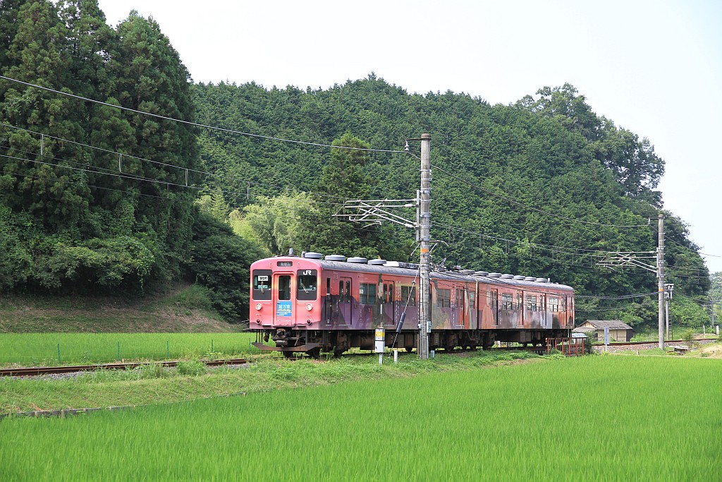 朝夕には117系が走っているようですが、昼間の時間帯はほとんどが105系です。