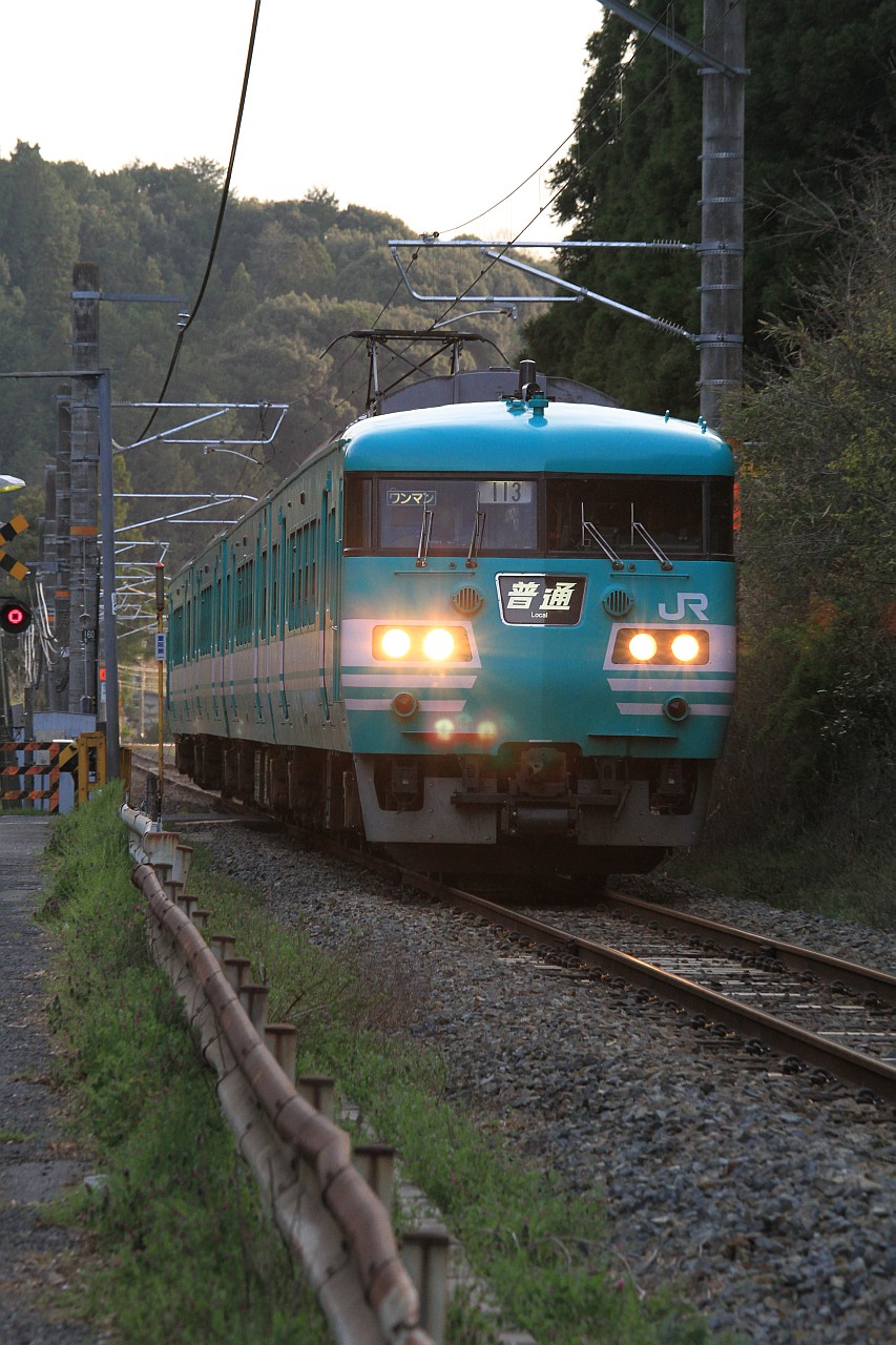 朝夕には117系が走っているようですが、昼間の時間帯はほとんどが105系です。