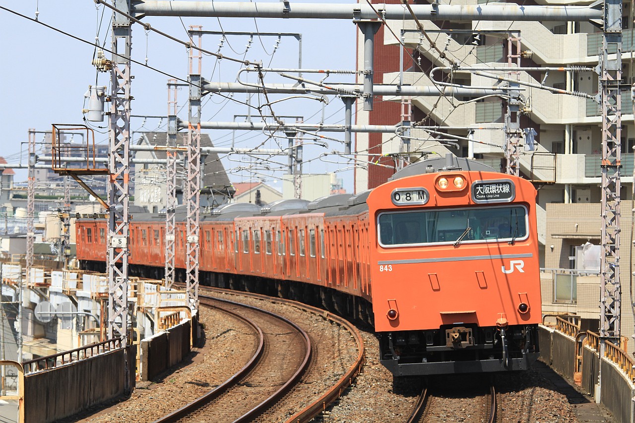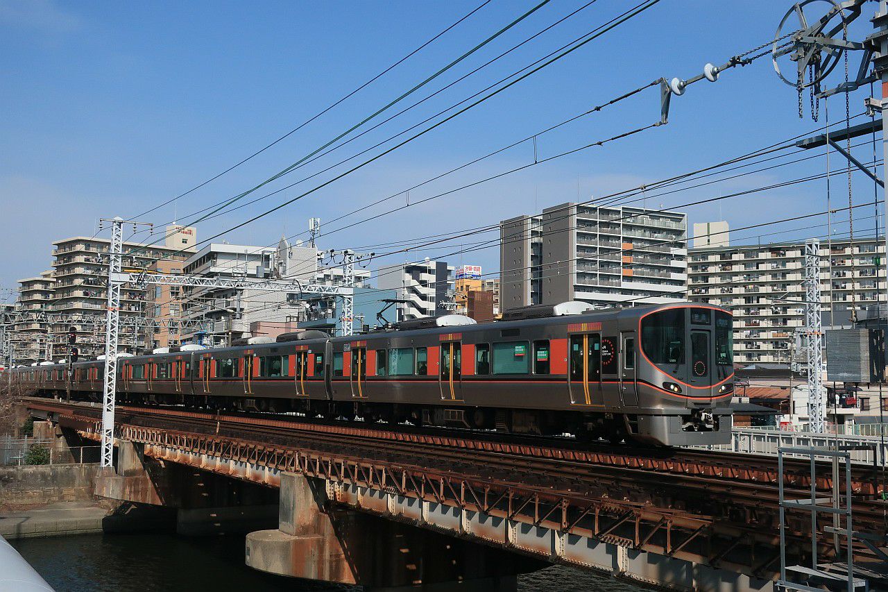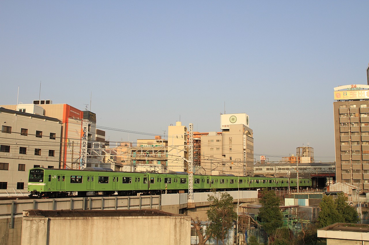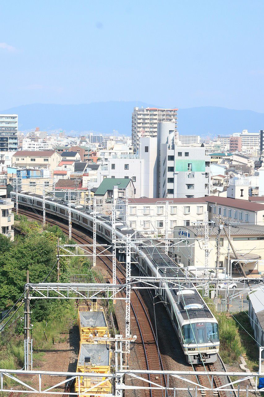 大阪環状線の普通・快速列車と、梅田貨物線を走る特急列車を狙うことができます。