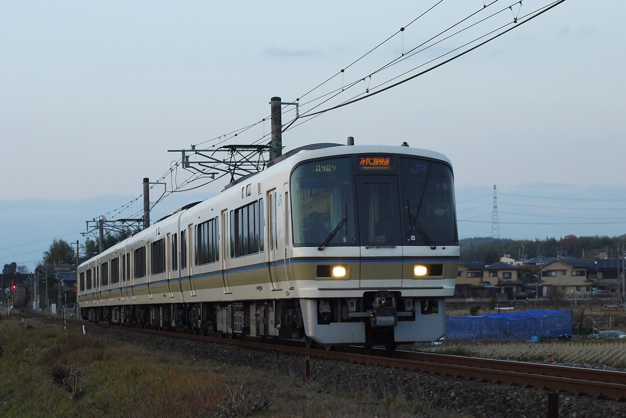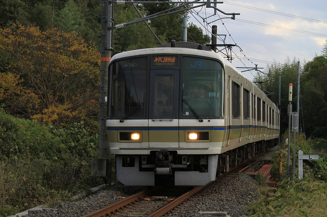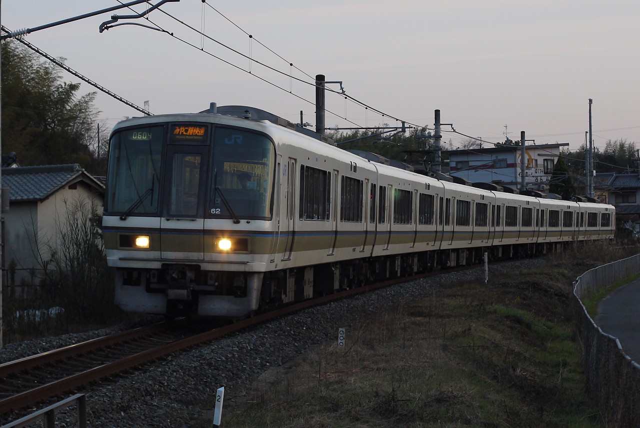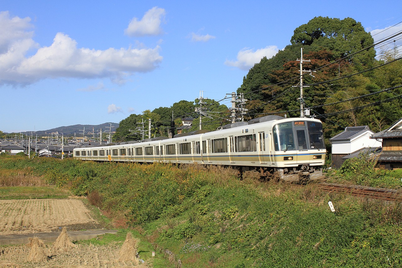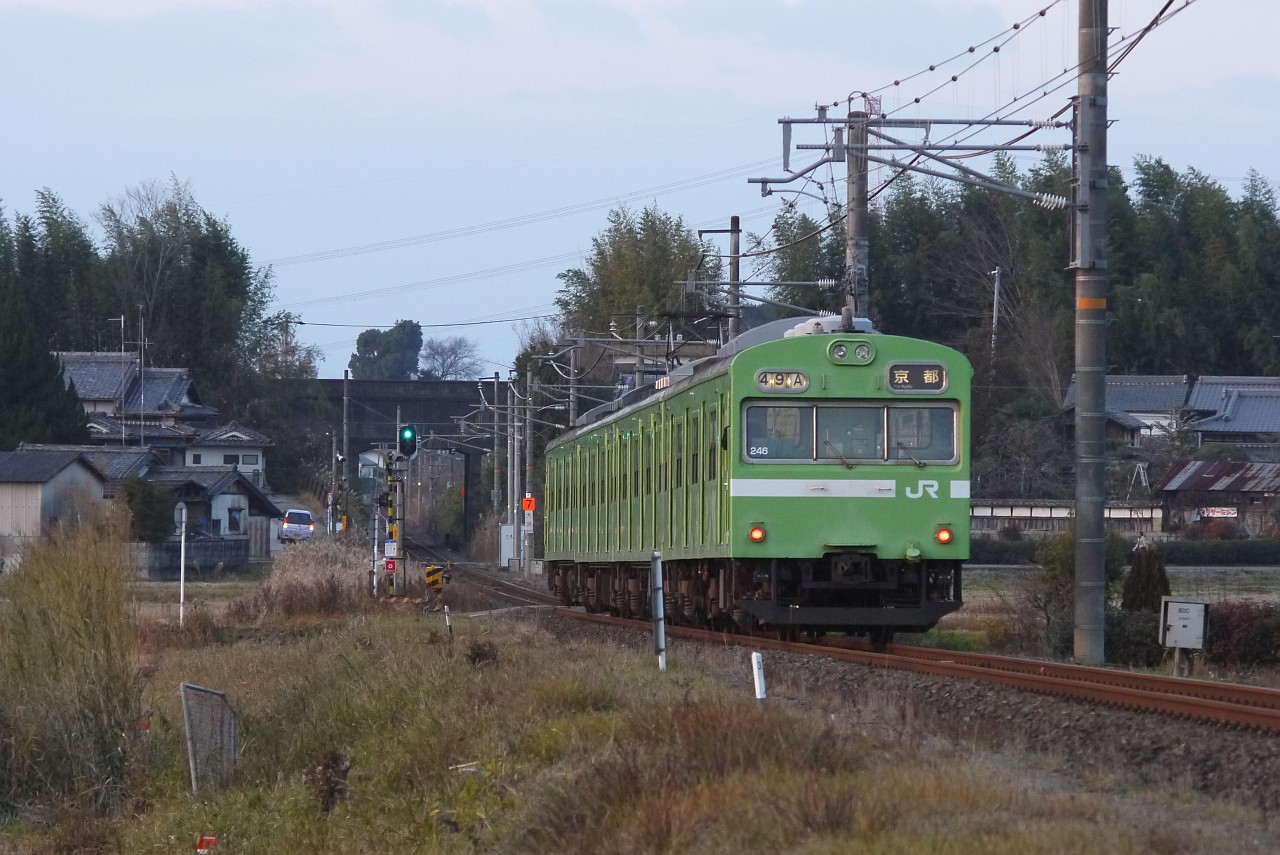 線路に沿って走る府道との踏切があり、その踏切近くからの撮影です。