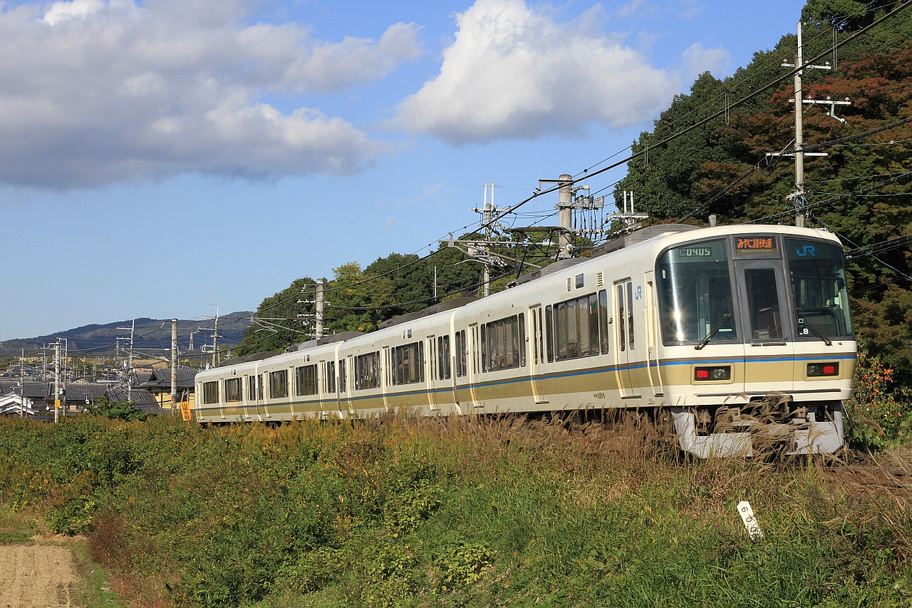 線路に沿って走る府道との踏切があり、その踏切近くからの撮影です。