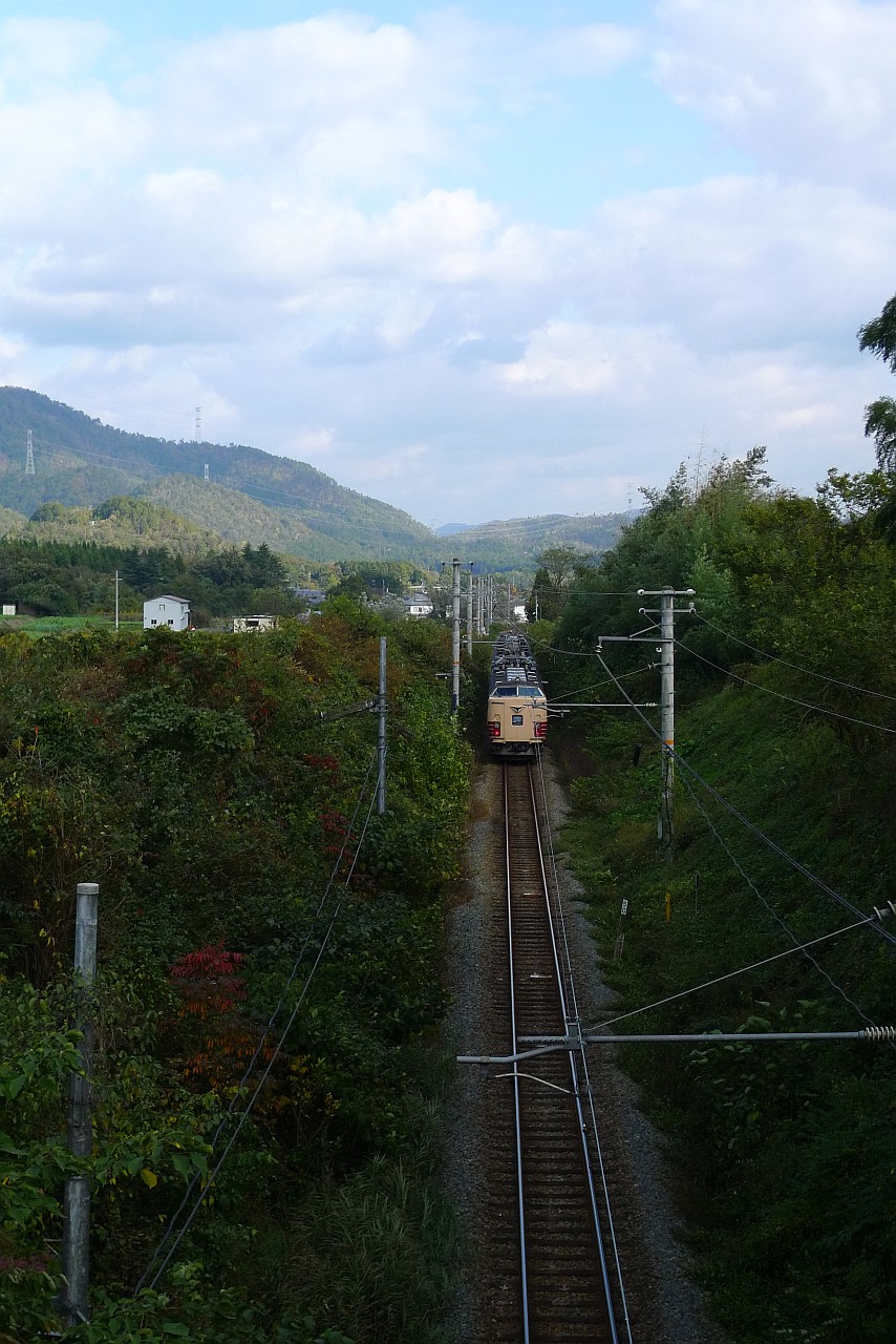 単線区間を行く列車を跨線橋から狙います。
