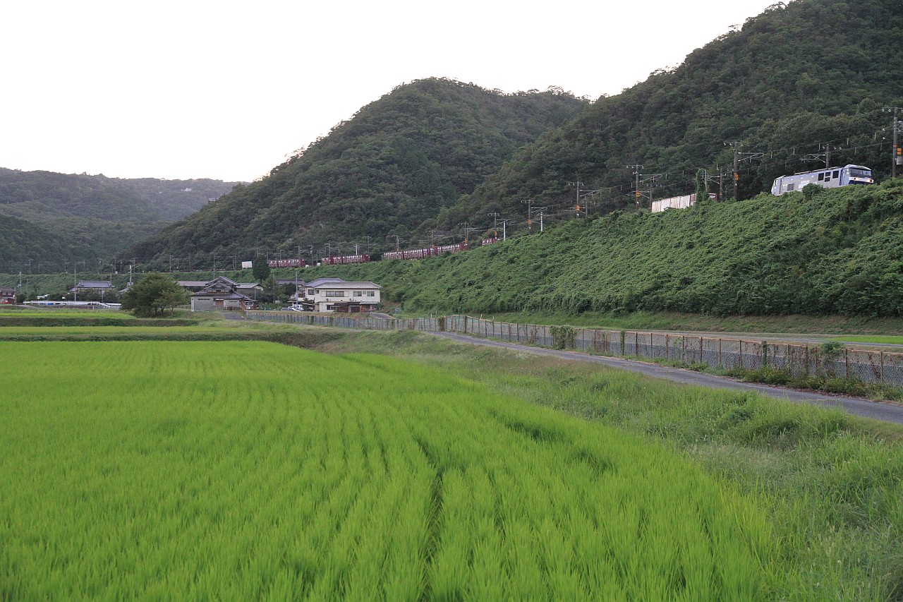 万富側の踏切近くから望遠気味で狙う構図です。