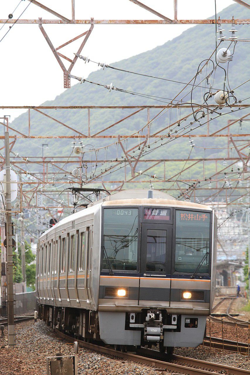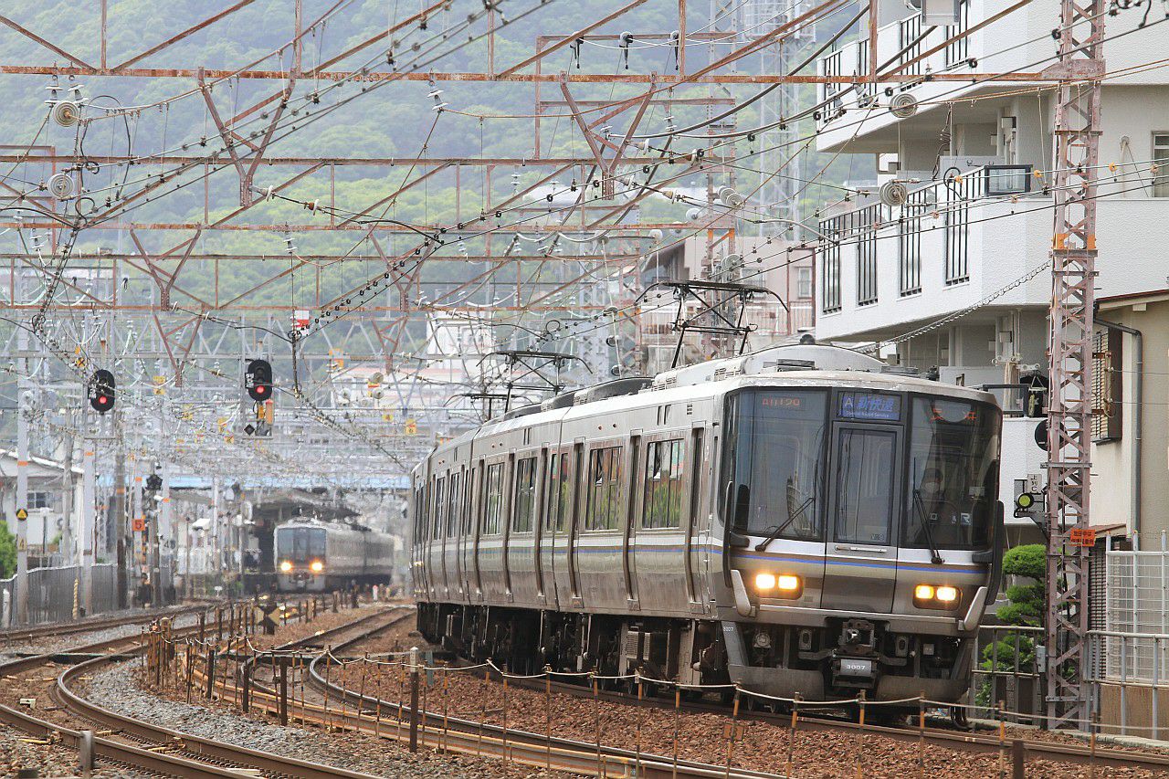 須磨駅方向は手前でカーブしていて、須磨の山をバックに狙うことができます。