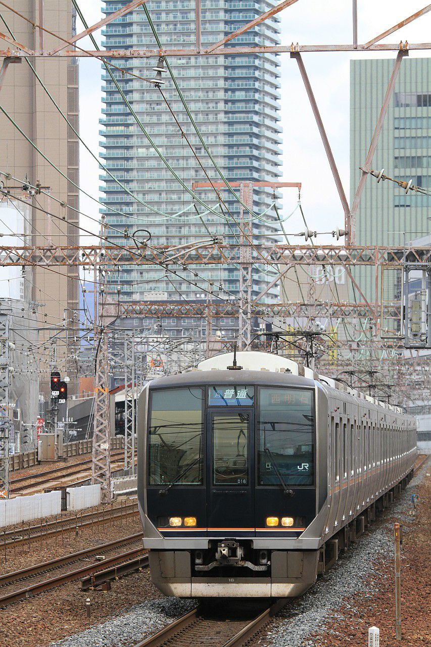 ビル群をバックに複々線を走る列車を狙えます。
