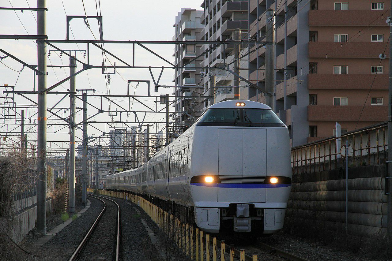 貨物列車や、宮原から向日町に向かう特急列車が走っています。