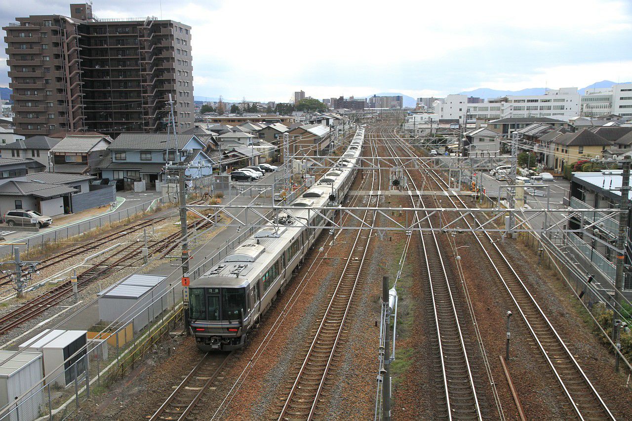 草津駅付近の複々線を行く列車です。