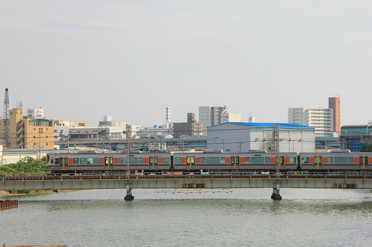 西九条駅近くの六軒家川の鉄橋を渡る列車です。