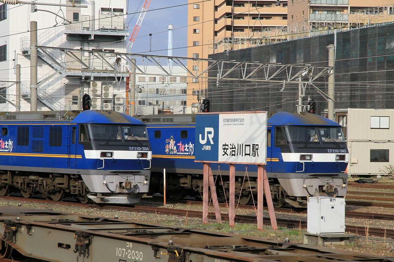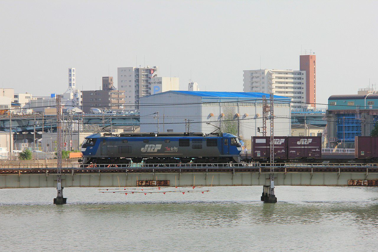 安治川口駅のホームから、隣接する貨物駅に停車しているEF210の撮影です。
