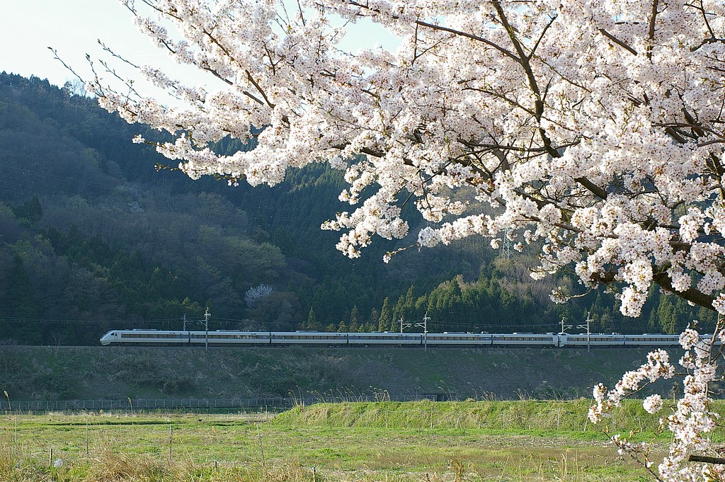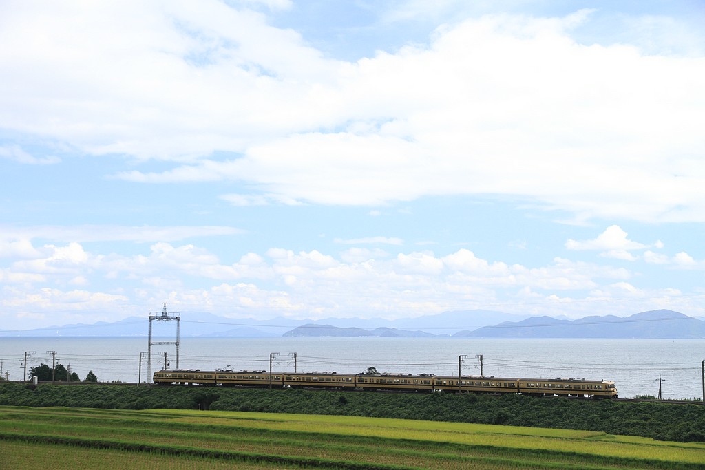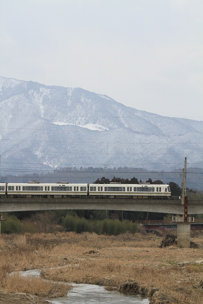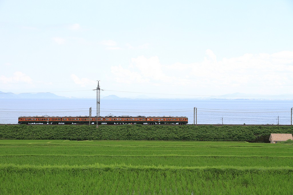 国道161号線から入って、線路を越える手前から山をバックにして狙います。