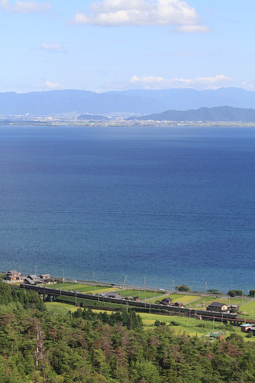 S字カーブ狙いから角度を変えると、琵琶湖をバックにした風景を撮影することができます。