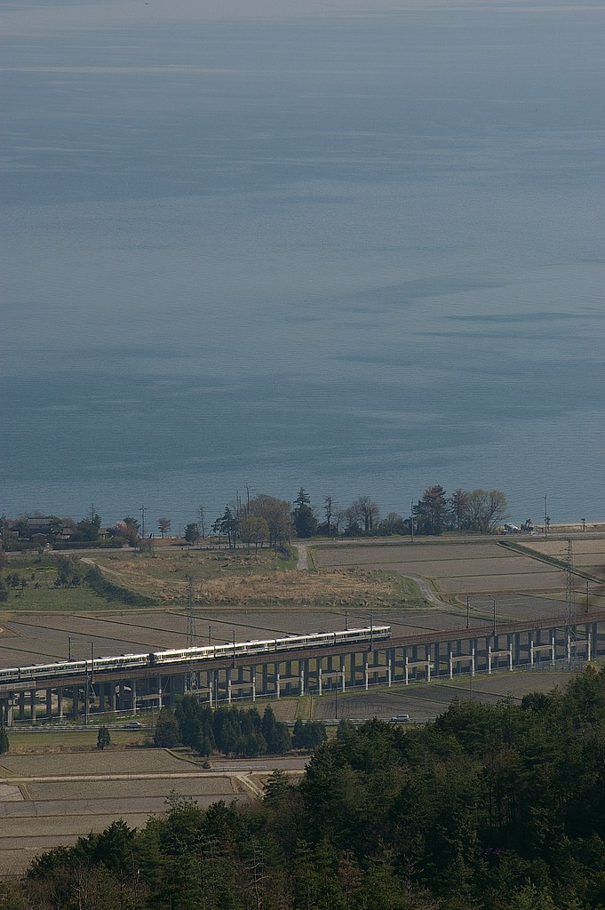 山の上から湖西線と琵琶湖を俯瞰するポイントです。