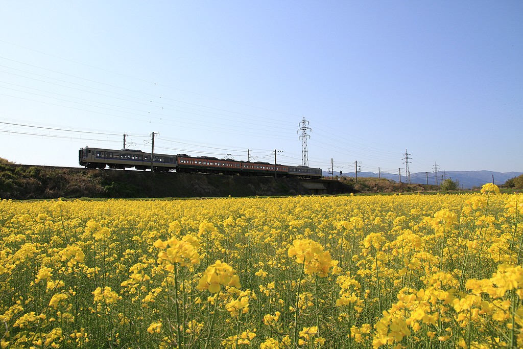 バイパスと湖西線の挟まれたエリアに菜の花畑が見えてきます。