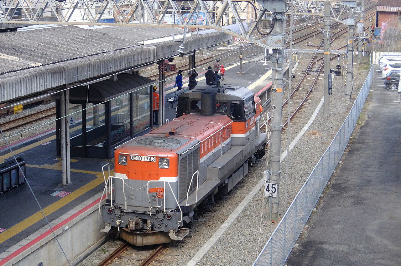片町線と城東貨物線の分岐点近くにある踏切からの撮影です。