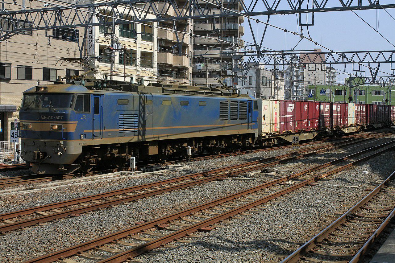 城東貨物線からやって来た貨物列車を狙うことができます。