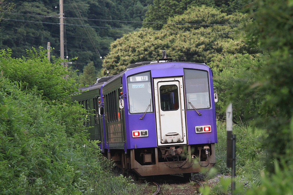 列車本数:1時間に1往復、キハ120が1~2両で走っています。