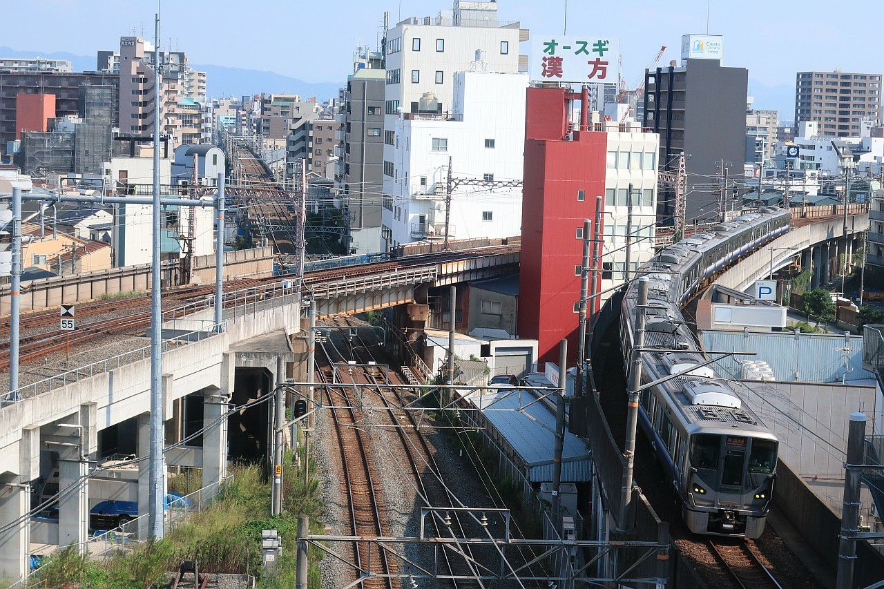線路の上を走る天王寺バイパスの歩道からの撮影です。